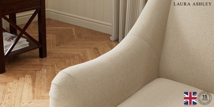 Subtle yet supreme, Edwin from Laura Ashley adds a touch of charm to your sofa. With a soft herringbone pattern, this elegant fabric is designed to bring an inviting and indulgent feel to your space.