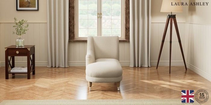 7.3.1 Buy Lynden by Laura Ashley Chaise Longue Left Hand Anneliese Oyster Natural Ornate Chrome Castor - Light Oak from the Seasons online shop