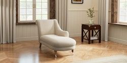 7.3.1 Buy Lynden by Laura Ashley Chaise Longue Right Hand Anneliese Oyster Natural Ornate Chrome Castor - Light Oak from the Seasons online shop