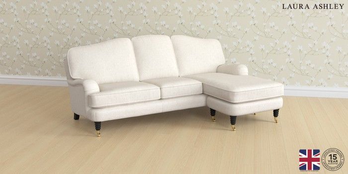 7.3.1 Buy Lynden by Laura Ashley Medium Sofa Chaise - Universal Anneliese Oyster Natural Ornate Brass Castor - Black from the Seasons online shop Click here to use our website with more accessibility support, for example screen readers
