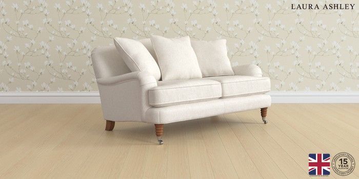 7.3.1 Buy Lynden Scatter Back by Laura Ashley 2 Seater Small Sofa Anneliese Oyster Natural Ornate Chrome Castor - Teak from the Seasons online shop