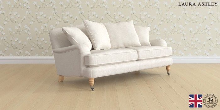 7.3.1 Buy Lynden Scatter Back by Laura Ashley 3 Seater Small Sofa Anneliese Oyster Natural Ornate Chrome Castor - Light Oak from the Seasons online shop