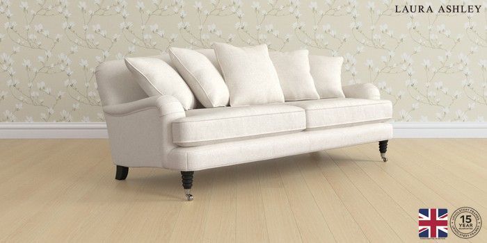 7.3.1 Buy Lynden Scatter Back by Laura Ashley 3 Seater Sofa Anneliese Oyster Natural Ornate Chrome Castor - Black from the Seasons online shop