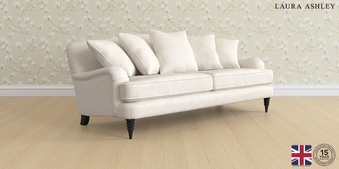 7.3.1 Buy Lynden Scatter Back by Laura Ashley 3 Seater Sofa Anneliese Oyster Natural Ornate Turned - Black from the Seasons online shop
