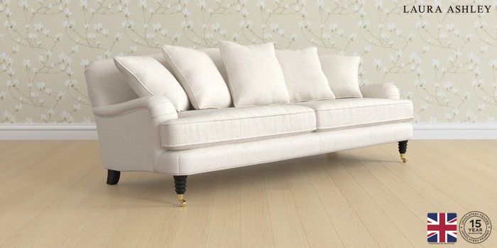7.3.1 Buy Lynden Scatter Back by Laura Ashley 4 Seater Sofa Anneliese Oyster Natural Ornate Brass Castor - Black from the Seasons online shop