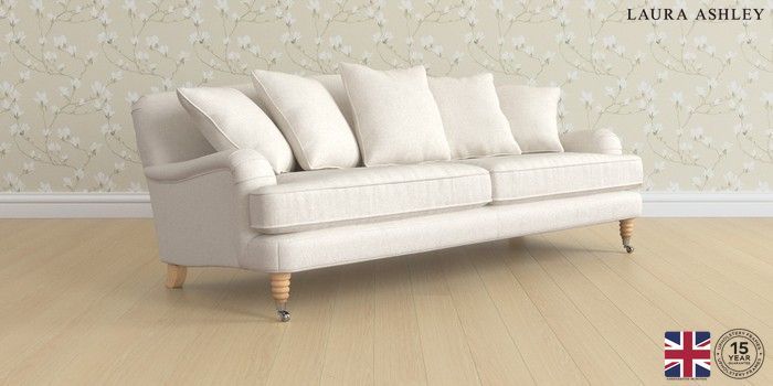 7.3.1 Buy Lynden Scatter Back by Laura Ashley 4 Seater Sofa Anneliese Oyster Natural Ornate Chrome Castor - Light Oak from the Seasons online shop