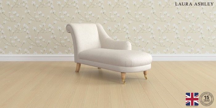 7.3.1 Buy Lynden Scatter Back by Laura Ashley Chaise Longue Right Hand Anneliese Oyster Natural Ornate Brass Castor - Light Oak from the Seasons online shop