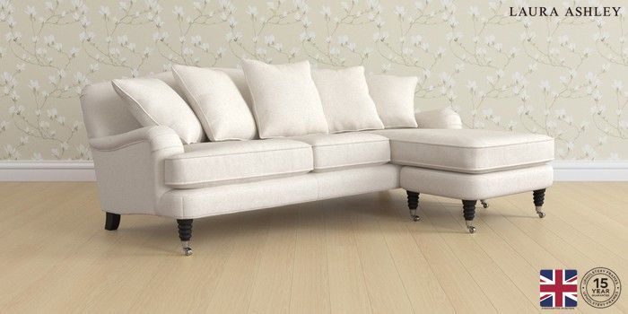 7.3.1 Buy Lynden Scatter Back by Laura Ashley Medium Sofa Chaise - Universal Anneliese Oyster Natural Ornate Chrome Castor - Black from the Seasons online shop Click here to use our website with more accessibility support, for example screen readers