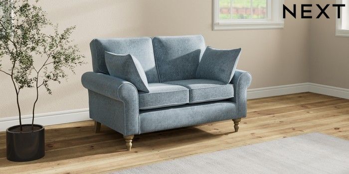 7.2.10 Buy Mallory 2 Seater Small Sofa Plush Chenille Light Blue High Turned - Light from the Seasons online shop Click here to use our website with more accessibility support, for example screen readers