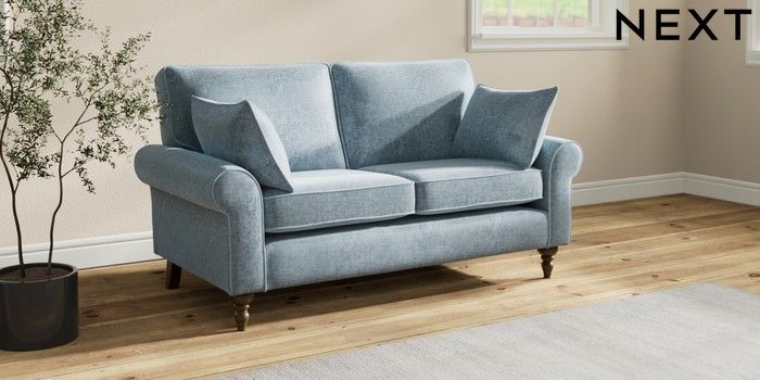 7.2.10 Buy Mallory 2 Seater Sofa Plush Chenille Light Blue High Turned - Mid from the Seasons online shop Click here to use our website with more accessibility support, for example screen readers