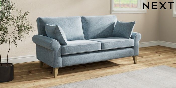 7.2.10 Buy Mallory 3 Seater Small Sofa Plush Chenille Light Blue High Tapered - Light from the Seasons online shop Click here to use our website with more accessibility support, for example screen readers