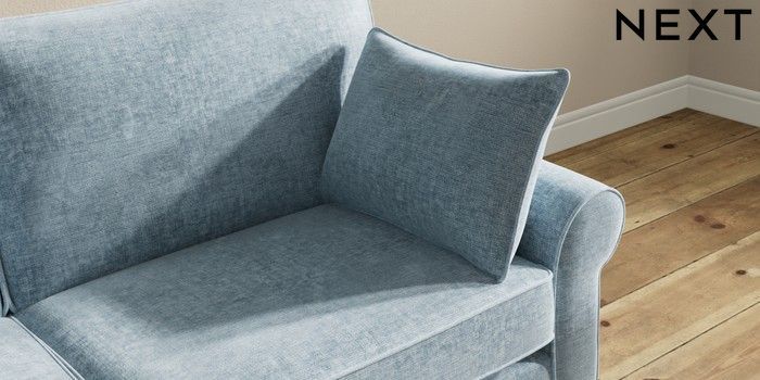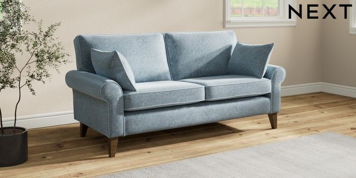 7.2.10 Buy Mallory 3 Seater Small Sofa Plush Chenille Light Blue High Tapered - Mid from the Seasons online shop Click here to use our website with more accessibility support, for example screen readers