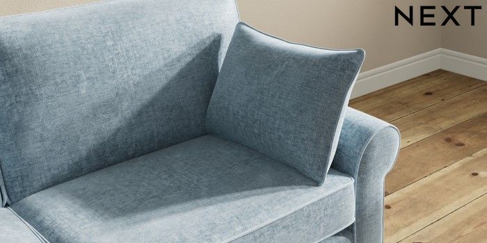 7.2.10 Buy Mallory 3 Seater Small Sofa Plush Chenille Light Blue High Turned - Dark from the Seasons online shop Click here to use our website with more accessibility support, for example screen readers