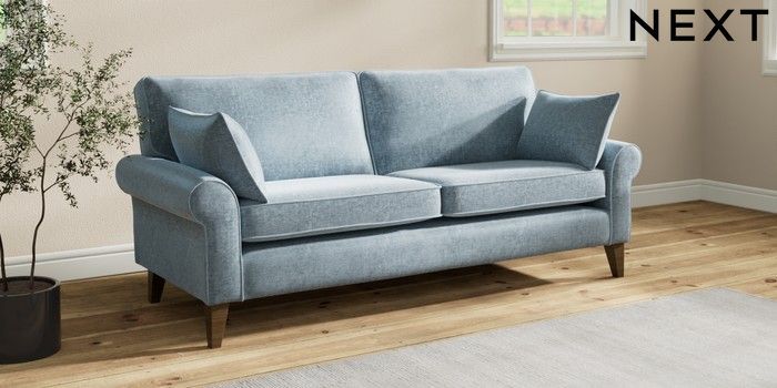 7.2.10 Buy Mallory 3 Seater Sofa Plush Chenille Light Blue High Tapered - Mid from the Seasons online shop Click here to use our website with more accessibility support, for example screen readers