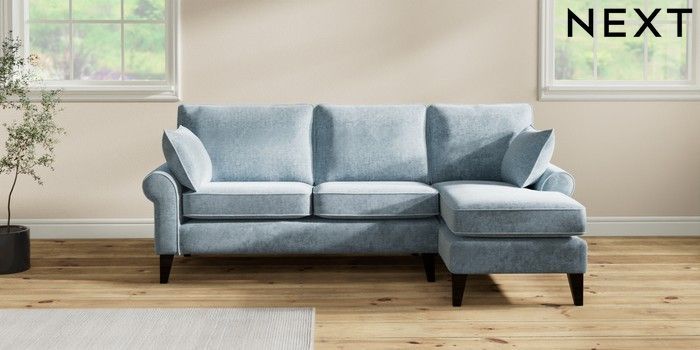 7.2.10 Buy Mallory Medium Sofa Chaise - Right Hand Plush Chenille Light Blue High Tapered - Dark from the Seasons online shop Click here to use our website with more accessibility support, for example screen readers