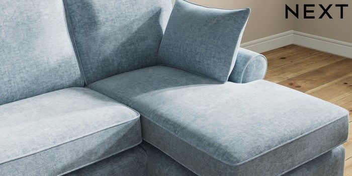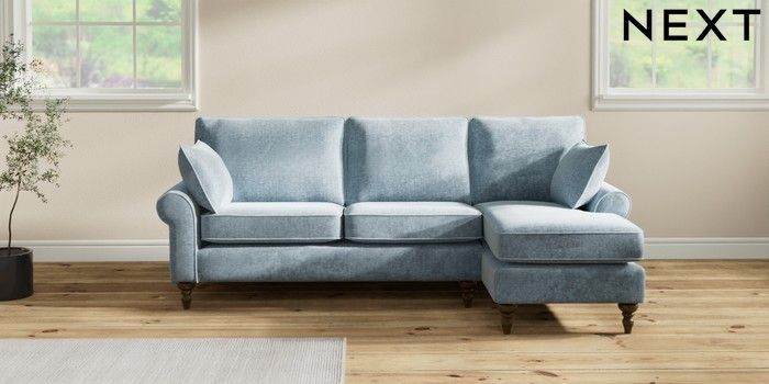 7.2.10 Buy Mallory Medium Sofa Chaise - Right Hand Plush Chenille Light Blue High Turned - Mid from the Seasons online shop Click here to use our website with more accessibility support, for example screen readers