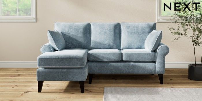 7.2.10 Buy Mallory Small Sofa Chaise - Left Hand Plush Chenille Light Blue High Tapered - Dark from the Seasons online shop Click here to use our website with more accessibility support, for example screen readers