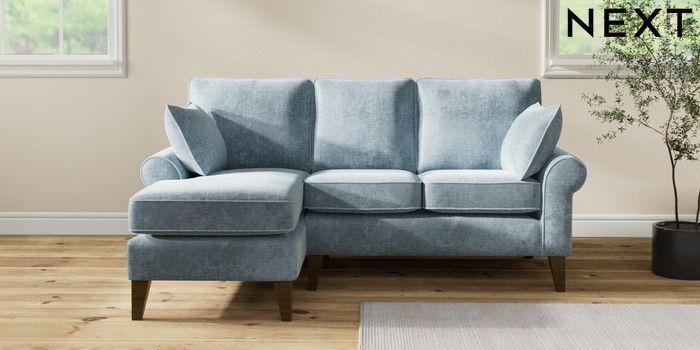 7.2.10 Buy Mallory Small Sofa Chaise - Left Hand Plush Chenille Light Blue High Tapered - Mid from the Seasons online shop Click here to use our website with more accessibility support, for example screen readers