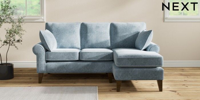 7.2.10 Buy Mallory Small Sofa Chaise - Right Hand Plush Chenille Light Blue High Tapered - Mid from the Seasons online shop Click here to use our website with more accessibility support, for example screen readers
