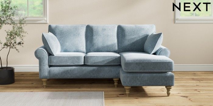7.2.10 Buy Mallory Small Sofa Chaise - Right Hand Plush Chenille Light Blue High Turned - Light from the Seasons online shop Click here to use our website with more accessibility support, for example screen readers