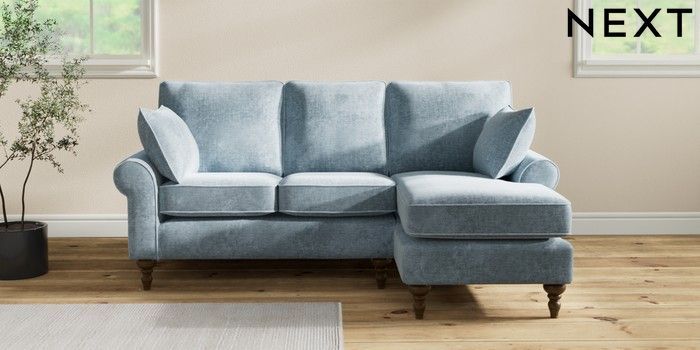 7.2.10 Buy Mallory Small Sofa Chaise - Right Hand Plush Chenille Light Blue High Turned - Mid from the Seasons online shop Click here to use our website with more accessibility support, for example screen readers