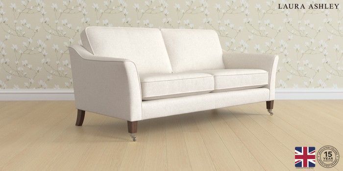 7.3.1 Buy Marford by Laura Ashley 3 Seater Sofa Anneliese Oyster Natural Straight Chrome Castor - Chestnut from the Seasons online shop