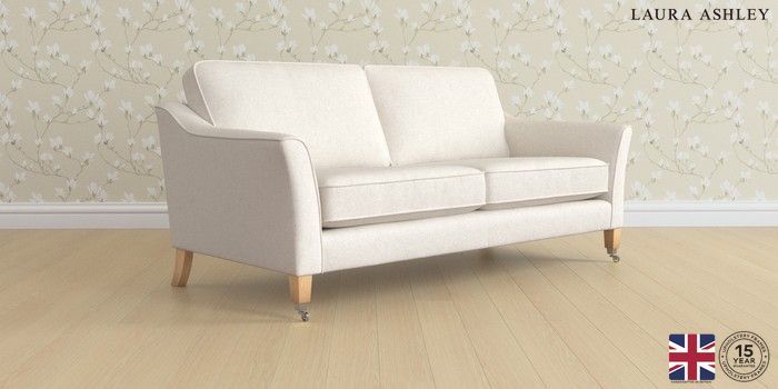 7.3.1 Buy Marford by Laura Ashley 3 Seater Sofa Anneliese Oyster Natural Straight Chrome Castor - Light Oak from the Seasons online shop
