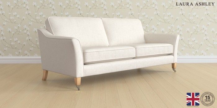 7.3.1 Buy Marford by Laura Ashley 4 Seater Sofa Anneliese Oyster Natural Straight Chrome Castor - Light Oak from the Seasons online shop