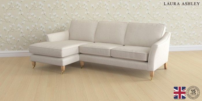 7.3.1 Buy Marford by Laura Ashley Medium Sofa Chaise - Left Hand Anneliese Oyster Natural Straight Brass Castor - Light Oak from the Seasons online shop Click here to use our website with more accessibility support, for example screen readers