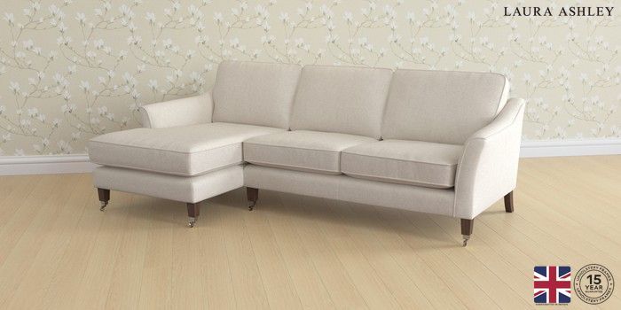 7.3.1 Buy Marford by Laura Ashley Medium Sofa Chaise - Left Hand Anneliese Oyster Natural Straight Chrome Castor - Chestnut from the Seasons online shop Click here to use our website with more accessibility support, for example screen readers