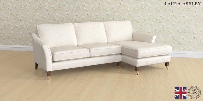 7.3.1 Buy Marford by Laura Ashley Medium Sofa Chaise - Right Hand Anneliese Oyster Natural Straight Brass Castor - Chestnut from the Seasons online shop