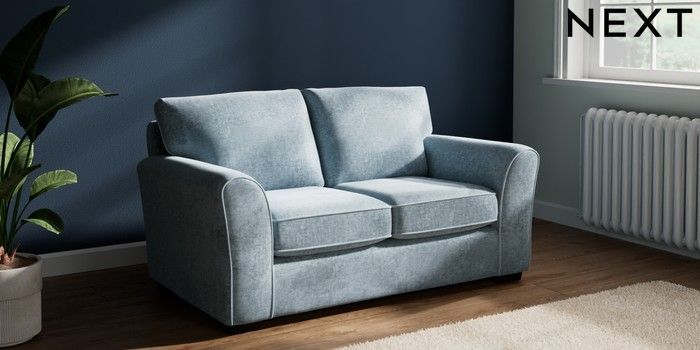 7.3.1 Buy Michigan II 2 Seater Small Sofa Plush Chenille Light Blue Slim Block - Dark from the Seasons online shop Click here to use our website with more accessibility support, for example screen readers