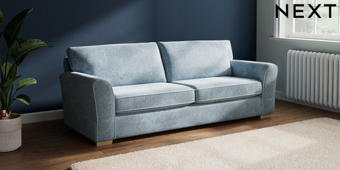 7.2.10 Buy Michigan II 3 Seater Sofa Plush Chenille Light Blue Slim Block - Light from the Seasons online shop Click here to use our website with more accessibility support, for example screen readers