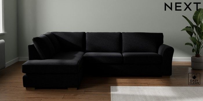 7.3.1 Buy Michigan II Large Corner Chaise - Left Hand Fine Chenille Easy Clean Black Slim Block - Mid from the Seasons online shop Click here to use our website with more accessibility support, for example screen readers
