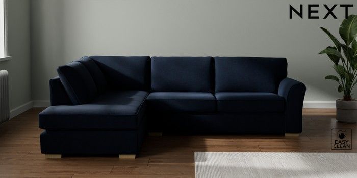 7.3.1 Buy Michigan II Large Corner Chaise - Left Hand Fine Chenille Easy Clean Dark Navy Blue Slim Block - Light from the Seasons online shop Click here to use our website with more accessibility support, for example screen readers