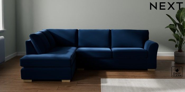 7.3.1 Buy Michigan II Large Corner Chaise - Left Hand Plush Velvet Easy Clean Navy Blue Slim Block - Light from the Seasons online shop Click here to use our website with more accessibility support, for example screen readers