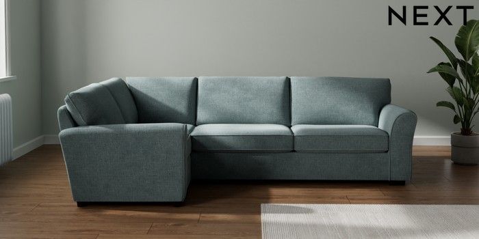 7.3.1 Buy Michigan II Large Corner Sofa - Left Hand Chunky Chenille Light Teal Green Slim Block - Dark from the Seasons online shop Click here to use our website with more accessibility support, for example screen readers