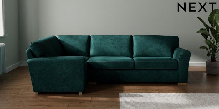 7.3.1 Buy Michigan II Large Corner Sofa - Left Hand Plush Chenille Dark Teal Green Slim Block - Light from the Seasons online shop Click here to use our website with more accessibility support, for example screen readers
