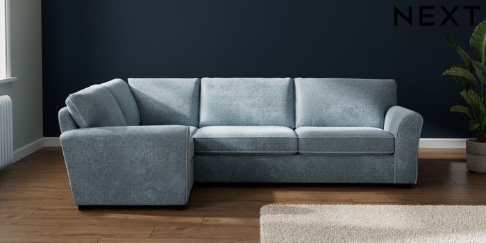 7.2.10 Buy Michigan II Large Corner Sofa - Left Hand Plush Chenille Light Blue Slim Block - Dark from the Seasons online shop Click here to use our website with more accessibility support, for example screen readers
