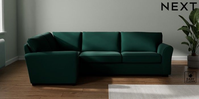 7.3.1 Buy Michigan II Large Corner Sofa - Left Hand Plush Velvet Easy Clean Bottle Green Slim Block - Dark from the Seasons online shop Click here to use our website with more accessibility support, for example screen readers