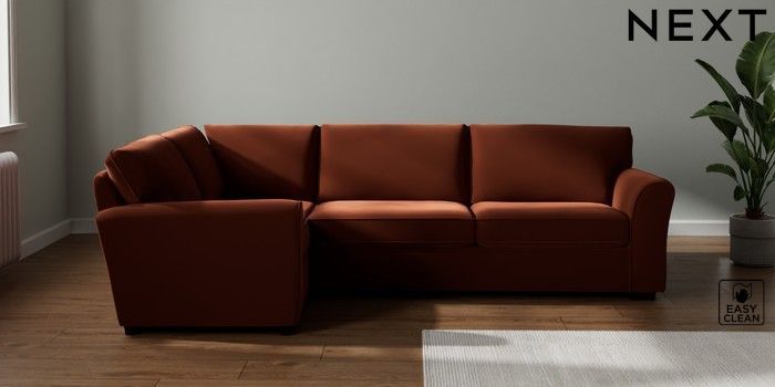 7.3.1 Buy Michigan II Large Corner Sofa - Left Hand Plush Velvet Easy Clean Ginger Orange Slim Block - Dark from the Seasons online shop Click here to use our website with more accessibility support, for example screen readers
