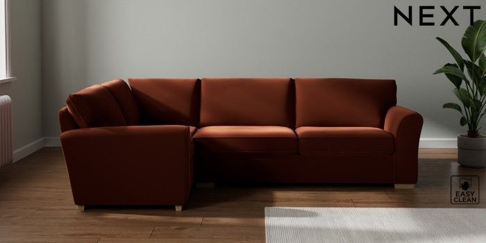 7.3.1 Buy Michigan II Large Corner Sofa - Left Hand Plush Velvet Easy Clean Ginger Orange Slim Block - Light from the Seasons online shop Click here to use our website with more accessibility support, for example screen readers