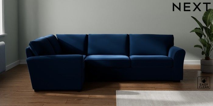 7.3.1 Buy Michigan II Large Corner Sofa - Left Hand Plush Velvet Easy Clean Navy Blue Slim Block - Dark from the Seasons online shop Click here to use our website with more accessibility support, for example screen readers