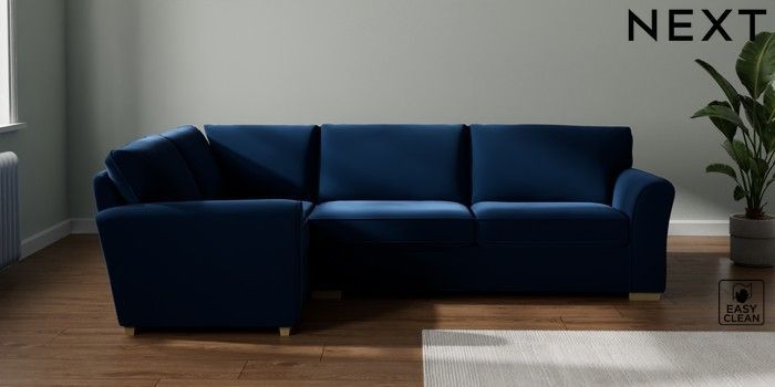 7.3.1 Buy Michigan II Large Corner Sofa - Left Hand Plush Velvet Easy Clean Navy Blue Slim Block - Light from the Seasons online shop Click here to use our website with more accessibility support, for example screen readers