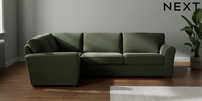 7.3.1 Buy Michigan II Large Corner Sofa - Left Hand Relaxed Linen Look Dark Green Slim Block - Mid from the Seasons online shop Click here to use our website with more accessibility support, for example screen readers