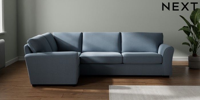 7.3.1 Buy Michigan II Large Corner Sofa - Left Hand Relaxed Linen Look Mid Blue Slim Block - Dark from the Seasons online shop Click here to use our website with more accessibility support, for example screen readers
