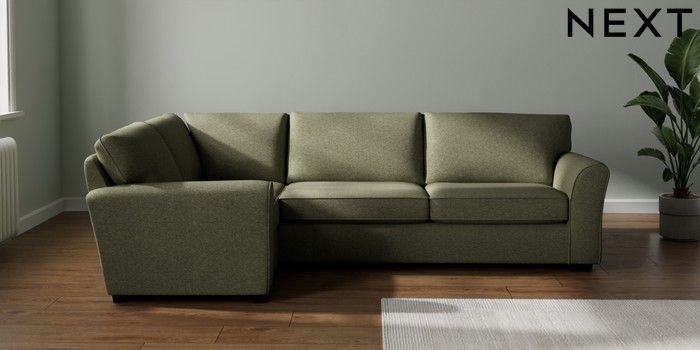 7.3.1 Buy Michigan II Large Corner Sofa - Left Hand Tweedy Chenille Mid Moss Green Slim Block - Dark from the Seasons online shop Click here to use our website with more accessibility support, for example screen readers