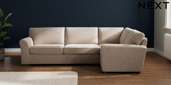 7.3.1 Buy Michigan II Large Corner Sofa - Right Hand Cotswold Chenille Light Natural Slim Block - Mid from the Seasons online shop Click here to use our website with more accessibility support, for example screen readers