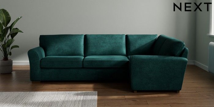 7.3.1 Buy Michigan II Large Corner Sofa - Right Hand Plush Chenille Dark Teal Green Slim Block - Mid from the Seasons online shop Click here to use our website with more accessibility support, for example screen readers