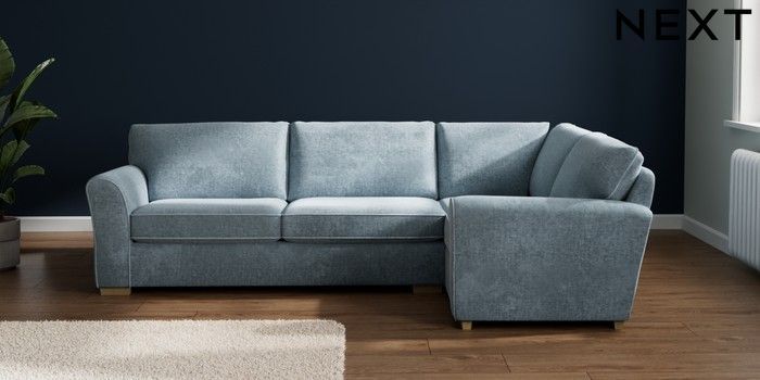 7.2.10 Buy Michigan II Large Corner Sofa - Right Hand Plush Chenille Light Blue Slim Block - Light from the Seasons online shop Click here to use our website with more accessibility support, for example screen readers